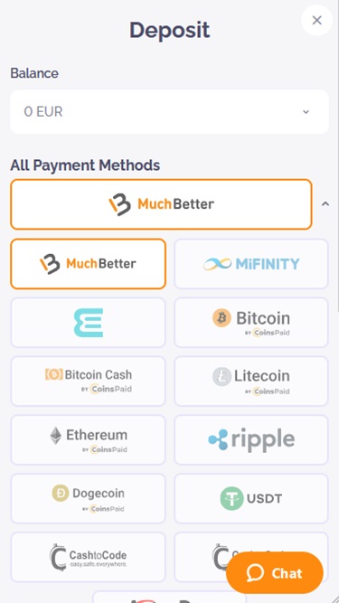 O departamento de suporte está disponível para os jogadores também através do formulário online localizado na página "Suporte" ou através da opção de chat ao vivo.