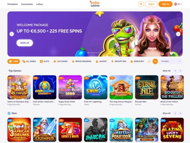 Esta marca de jogos de azar possui uma plataforma encantadora, projetada em tons pastel. A interface pode parecer minimalista, mas é extremamente bem organizada e totalmente funcional. Otimizada para desktop e dispositivos móveis , a BOHO proporcionará aos jogadores uma ótima experiência de jogo, independentemente do dispositivo escolhido para jogar seus jogos favoritos.
