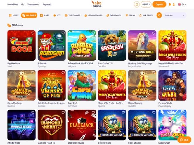 Para oferecer aos jogadores o melhor conteúdo possível, o cassino BOHO firmou parcerias com fornecedores de software como SoftSwiss, Booming Games, Habanero, Kalamba Games e outros.