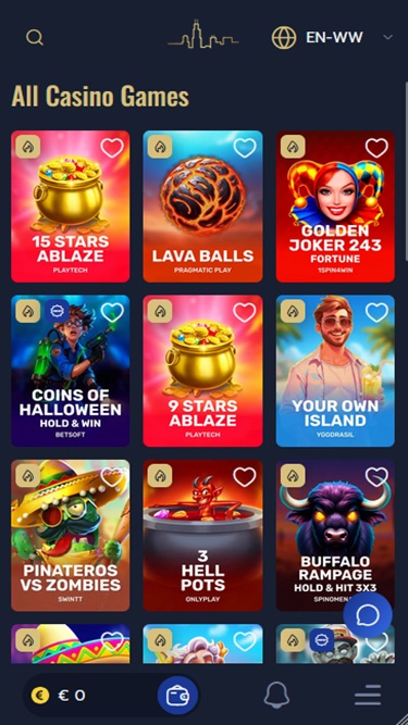 É dada grande ênfase às necessidades dos jogadores dentro do cassino, portanto, aqueles que nos visitam pela primeira vez podem esperar uma biblioteca de jogos abundante, repleta de títulos populares, bem como um plano promocional bem elaborado. Por outro lado, os clientes que se destacarem terão a oportunidade de aproveitar as recompensas de um programa de fidelidade exclusivo, que oferece uma série de vantagens exclusivas.