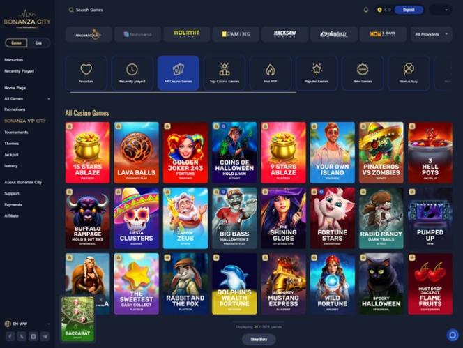 Dito isso, vamos dar uma olhada mais de perto em algumas dessas categorias principais e no que você pode esperar ao visitar o Bonanza City Casino.