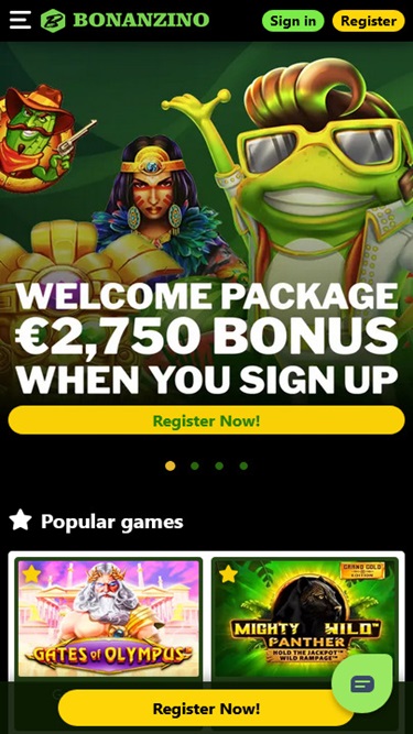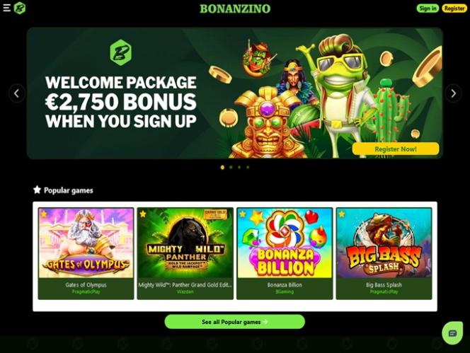 Ao entrar no Bonanzino, os jogadores são recebidos por uma página inicial minimalista que não tenta sobrecarregá-los com informações desnecessárias, mas exibe imediatamente um banner rolável com as promoções mais vantajosas que podem resgatar e participar.