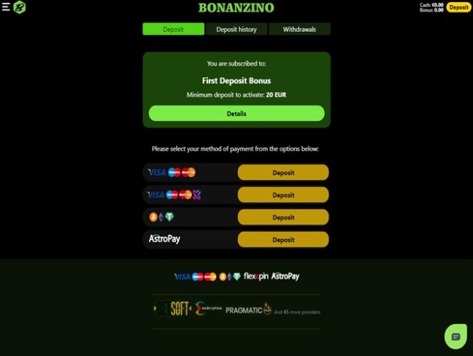 Considerando que os programas de fidelidade e os clubes VIP se tornaram partes integrantes de um cassino online, é lamentável que o Bonanzino Casino não possua um sistema para recompensar jogadores frequentes. Esperamos que isso mude no futuro, pois os programas de fidelidade são uma excelente maneira de as marcas atraírem novos usuários.