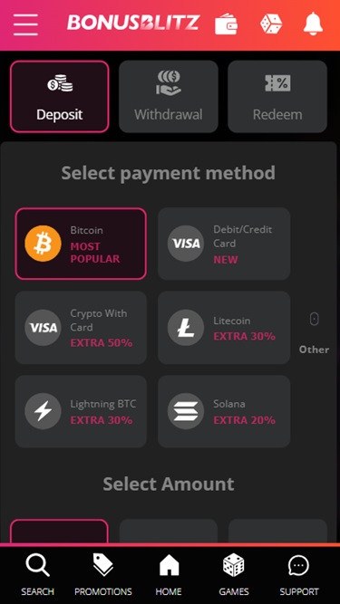 O Bonus Blitz Casino oferece diversas opções bancárias. Quem preferir usar criptomoedas como principal método de pagamento ficará feliz em saber que poderá fazê-lo com extrema facilidade. Os jogadores também podem escolher entre muitas outras opções populares, como Visa , Mastercard, Skrill, Neteller e outras.