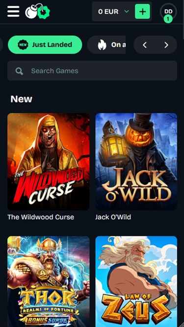 Uma vez dentro do site, você poderá navegar por diversas seções de jogos localizadas na parte superior da página. Para facilitar ainda mais, o cassino incluiu várias ferramentas úteis, como a barra de pesquisa, as abas "Últimos jogos" e "Meus favoritos" .