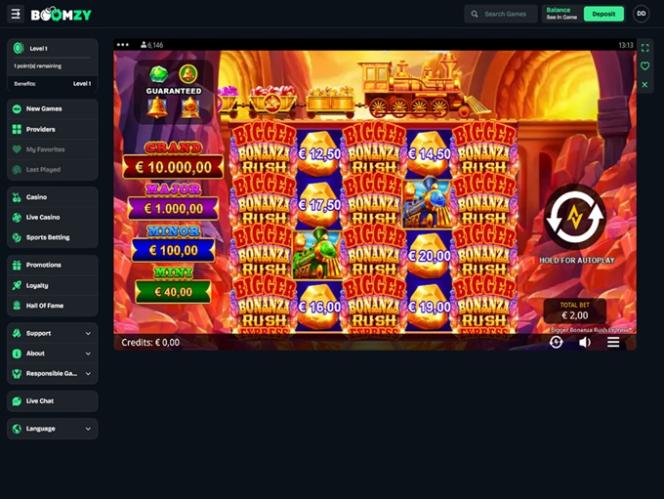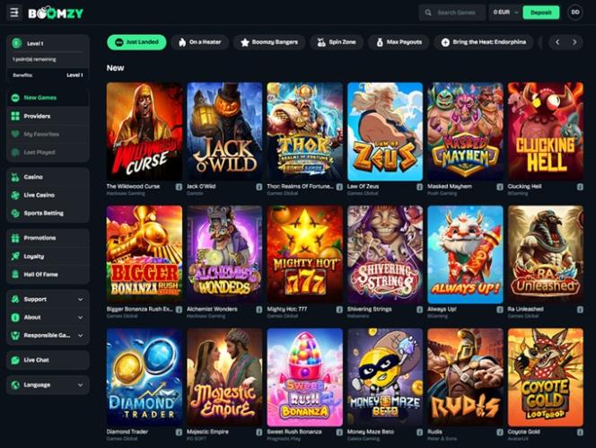 O Boomzy Casino oferece milhares de jogos emocionantes fornecidos por alguns dos gigantes mais respeitados da indústria de iGaming, como Evolution Gaming, Relax Gaming , Nolimit City, Endorphina, Hacksaw Gaming e Pragmatic Play, para citar apenas alguns.