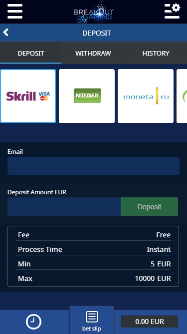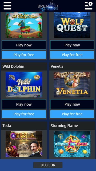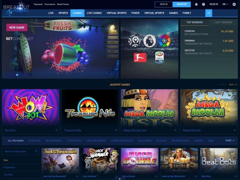 A Breakout Gaming é fornecida pela Net Entertainment, 1x2gaming, ELK Studios, Evolution Gaming, iSoftBet, playson, Quickspin, WM, Endorphina, Wazdan, GameArt, Booming Games, BetConstruct, Pragmatic Play, ZEUS Services, Wizard Games, CT Interactive, NextGen, Pariplay, iGaming2go, Genii and Mr Slotty e os jogos do cassino são oferecidos por meio de uma plataforma online de jogo instantâneo, que carrega os jogos diretamente no seu navegador de internet. O cassino também oferece suporte para jogos em dispositivos móveis, o que significa que você pode jogar no seu smartphone ou tablet.