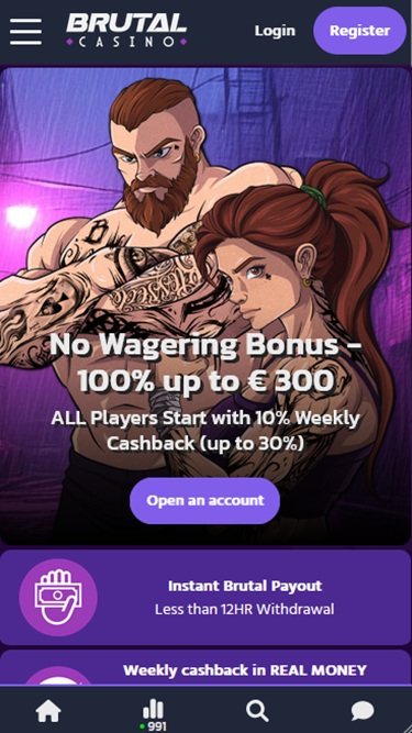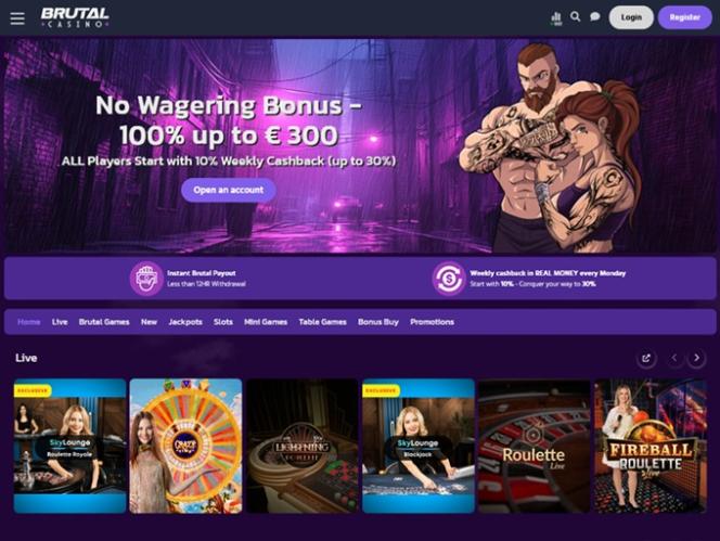 O Brutal Casino possui uma vasta biblioteca de jogos e oferece um generoso programa de fidelidade e um excelente plano de promoções. À primeira vista, este é um destino promissor para jogos de azar online , e ficamos curiosos para explorá-lo mais a fundo.