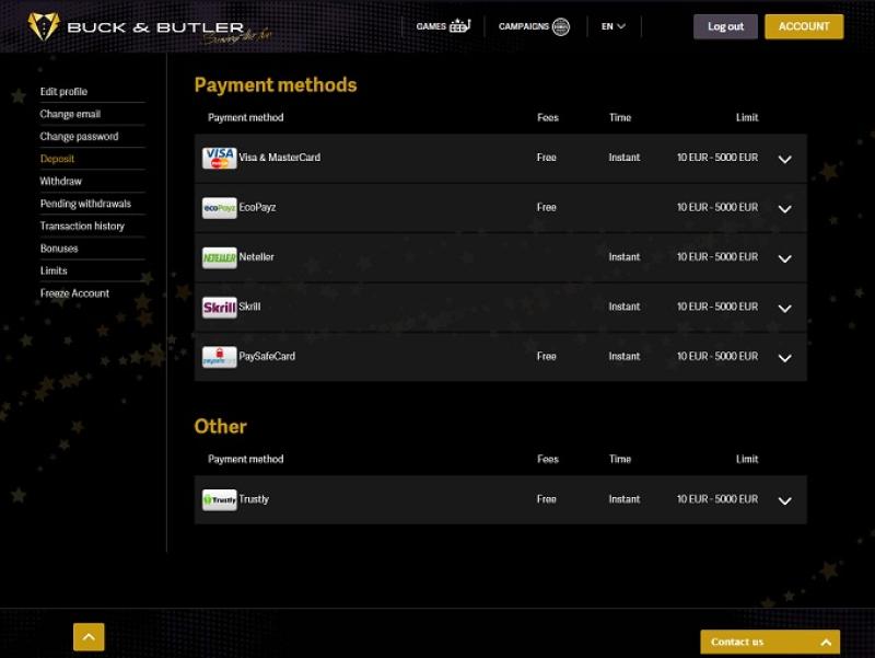 Embora Buck and Butler seja um bom cassino online, o site cobra taxas sobre saques e o suporte não está disponível 24 horas por dia.