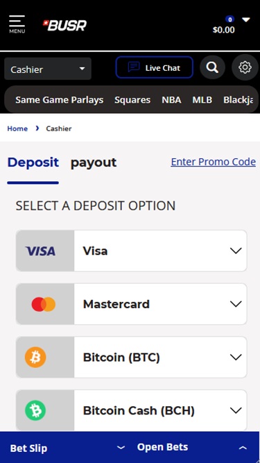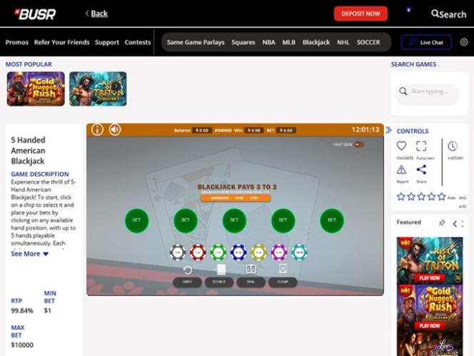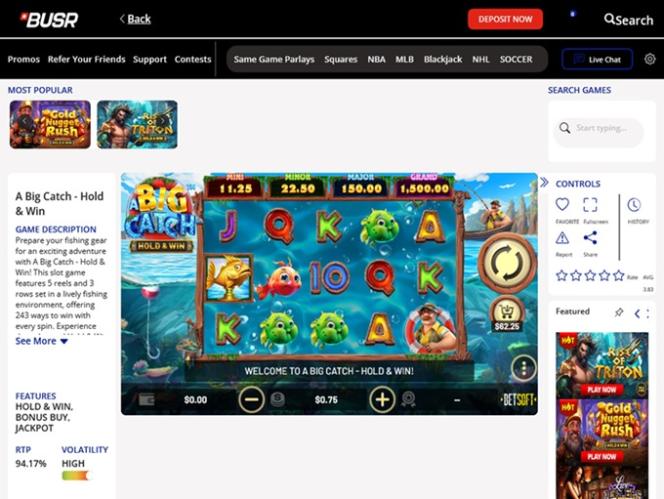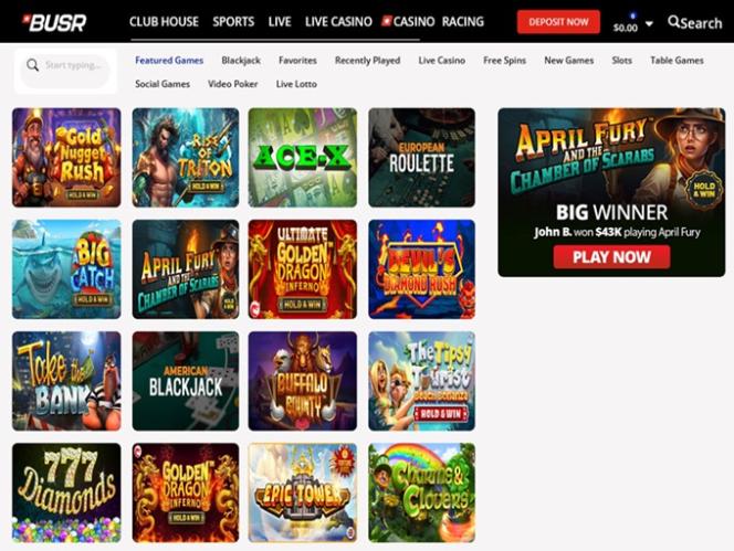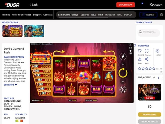 Embora esta análise foque mais nos jogos de cassino, vale mencionar que a BUSR oferece uma seção de apostas esportivas bastante completa. Portanto, se você se interessa por esportes, encontrará opções como NCAAB, NFL, apostas em eventos esportivos (PROPS), NBA, NHL, MMA, corridas de cavalos e outras modalidades esportivas disponíveis para jogadores dos EUA.