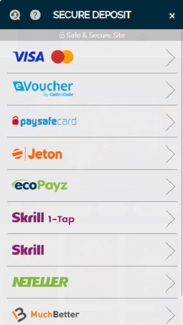 Em relação aos métodos de pagamento na Bzeebet, você não poderá fazer depósitos via criptomoedas, o que pode afastar alguns jogadores, mas poderá usar algumas das opções mais populares, como Visa, Mastercard, Skrill, Ecopayz e Astropay. Você também poderá fazer depósitos via Neteller, se preferir.