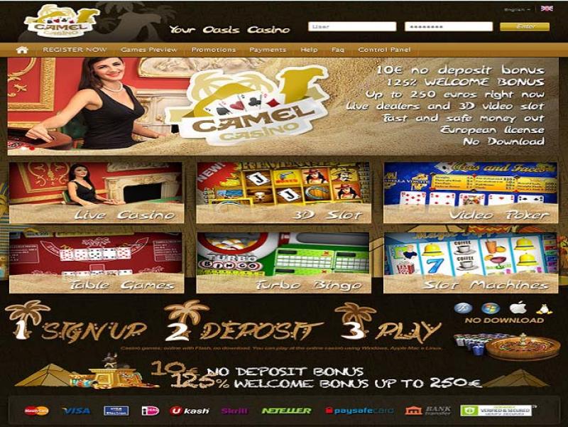 Camel Casino, definitivamente um cassino muito profissional e emocionante, com várias ótimas opções.