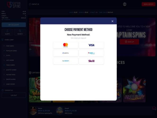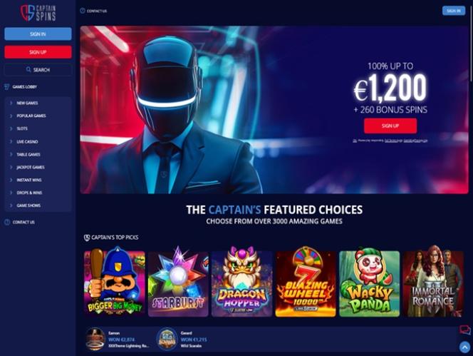 Captain Spins é um site de apostas online operado pela White Hat Gaming Limited. O cassino se inspira em um certo super-herói que você talvez já tenha visto nos cinemas e oferece aos clientes uma variedade de jogos, um excelente programa de fidelidade, ótimo suporte e ótimas opções bancárias. O resultado final provavelmente fará você se sentir "super".Informações do cassino