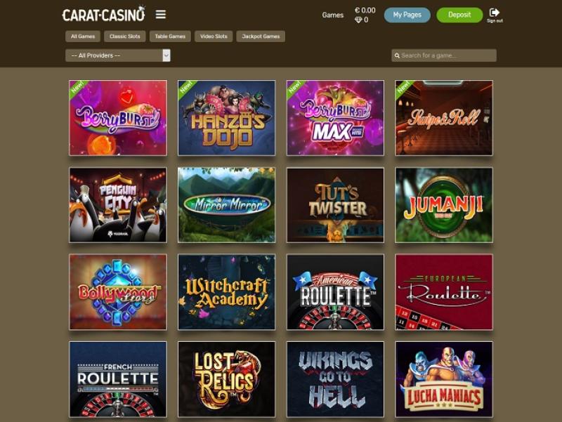 No Carat Casino, além dos jogos tradicionais, também há bingo e loteria. Isso é bem incomum. Aqui estão os melhores provedores e muitos bônus de rodadas grátis para depósitos. O depósito mínimo e o saque mínimo são de apenas 20 euros. Um cassino decente e bom.