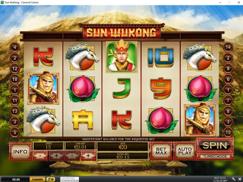 Conforme registrado pela Gaming Laboratories International (GLI) e coletado dos arquivos de registro de jogos do Carnival Casino, a porcentagem de pagamento calculada para jogos de caça-níqueis é de 95,43%. Essa porcentagem reflete o mês de agosto de 2014 e deve-se observar que esse valor representa a porcentagem de pagamento de todos os jogos da categoria, e não de um jogo individual. Além disso, não representa pagamentos futuros.