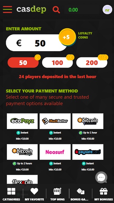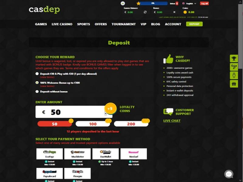 À primeira vista, o Casdep Casino é bom. Design bonito e moderno e navegação simples no site. Diversos provedores e métodos de depósito. Há um bônus para o primeiro depósito, mas há muitas restrições quanto aos países. Leia atentamente as regras de bônus antes de fazer um depósito.
