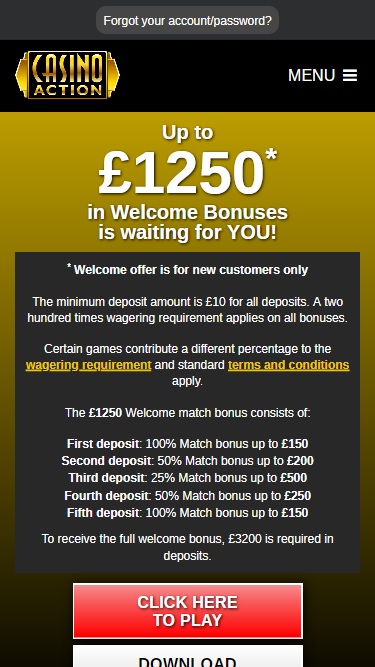 Abaixo está uma lista das promoções atualmente oferecidas no Casino Action.