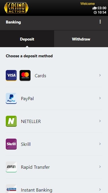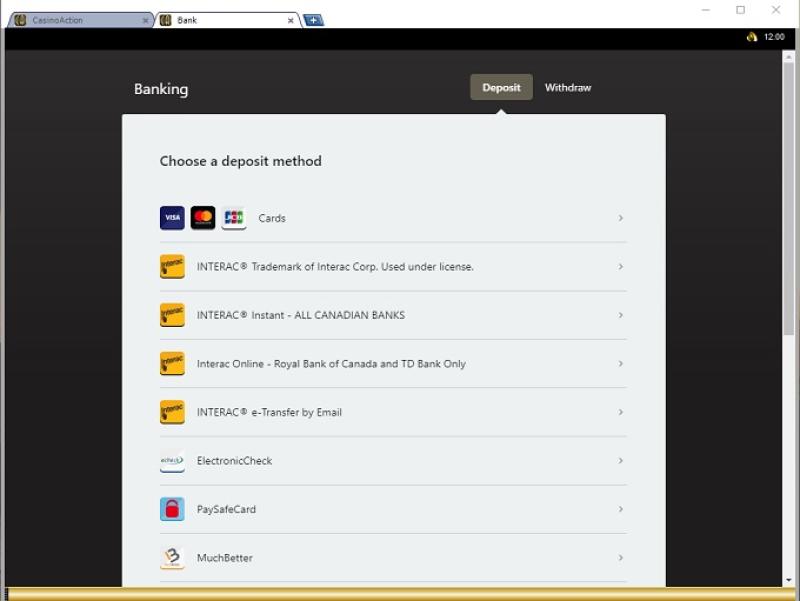 Opções bancárias no Casino Action