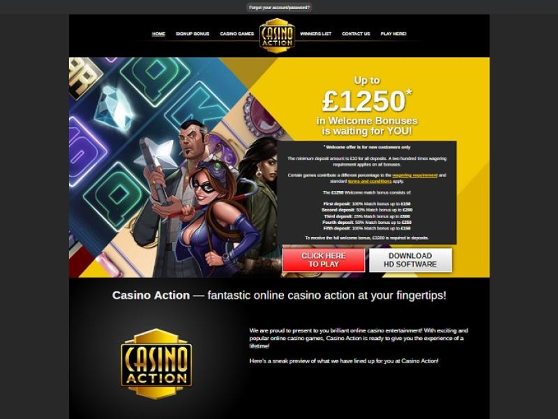 O Casino Action é alimentado por Microgaming, Evolution Gaming, Rabcat, Triple Edge Studios, Northern Lights Gaming, Stormcraft Studios, Switch Studios, Electric Elephant Games, All41 Studios, Gameburger Studios, Pulse 8 Studios, Neon Valley Studios, SpinPlay Games, Real Dealer Studios, GONG Gaming, On Air Entertainment, Buck Stakes Entertainment, Games Global, Old Skool Studios, Foxium, Just For The Win, PearFiction Studios, Slingshot Studios, Fortune Factory Studios, Crazy Tooth Studio, Alchemy Gaming, Snowborn Games, Gold Coin Studios, Half Pixel Studios, Eurostar Studios and Aurum Signature Studios , oferecendo centenas de jogos através de uma excelente plataforma web que carrega diretamente no seu navegador, além de disponibilizar um aplicativo para download. O cassino também possui uma excelente plataforma móvel, que oferece uma grande seleção de jogos para jogar em qualquer lugar.