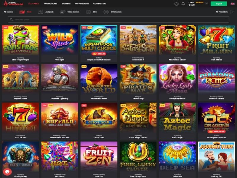 Existem centenas de jogos disponíveis no Casino Adrenaline, com slots de desenvolvedores como Microgaming e NetEnt. O cassino também oferece grandes jackpots progressivos da Microgaming, que distribuem milhões de dólares em prêmios a qualquer momento.