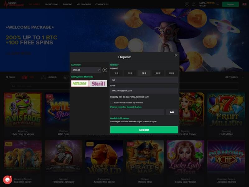 Abaixo está uma lista das promoções atualmente oferecidas no Casino Adrenaline.