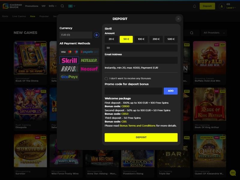 O Casino Buck se destaca como um cassino online que oferece uma ampla variedade de jogos com crupiês ao vivo, jogos de mesa e caça-níqueis em vídeo. Tudo isso é ainda melhor graças às generosas ofertas promocionais que este cassino oferece.