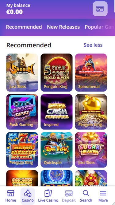 Eles têm uma boa seleção de jogos, mas o layout para escolher um provedor não é dos melhores. Se você encontrar a seção onde pode selecionar um provedor, apenas uma parte dos slots aparece. Você precisa procurar o provedor e navegar por uma pequena janela para navegar pelos slots.