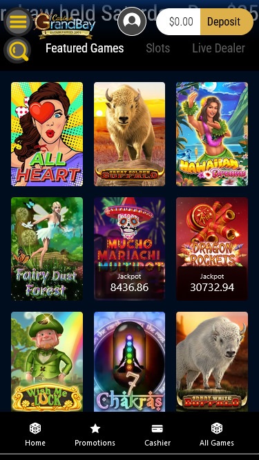 Colocamos o Casino Grand Bay na nossa lista negra devido a múltiplas reclamações sobre as práticas comerciais deste casino, bem como sobre o facto de lesar os jogadores nos seus ganhos. Aconselhamos veementemente todos os jogadores a evitarem jogar neste site predatório.