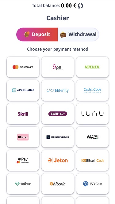 💰 Depósito mínimo€20/€30 (Bitcon)
