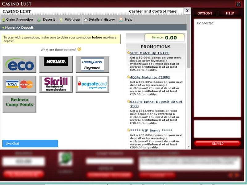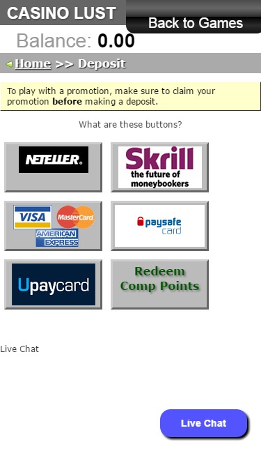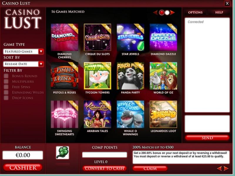 O Casino Lust é alimentado por Rival , que fornece seus jogos tanto por meio de um software para download quanto por meio de uma plataforma baseada na web.Outros jogos