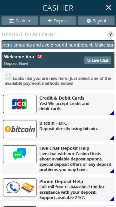 O suporte ao cliente está disponível 24 horas por dia, 7 dias por semana, via chat ao vivo, e-mail e telefone. Sempre avalio as equipes de suporte com base no tempo de resposta e na capacidade de responder a perguntas básicas sobre os termos do bônus. Os atendentes responderam rapidamente e conseguiram esclarecer minhas dúvidas sobre os requisitos de aposta do bônus, portanto, estão aprovados nesse quesito.