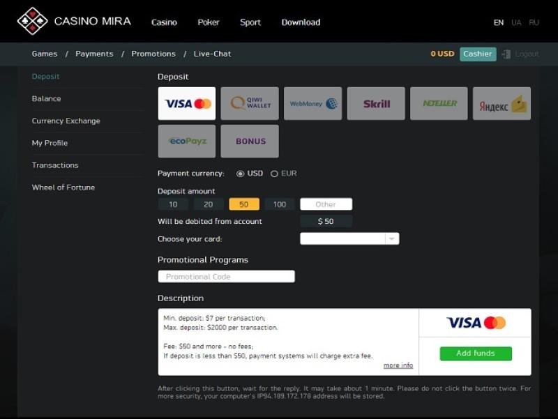 Embora o Casino Mira não ofereça um programa de fidelidade tradicional, ele oferece cashback em depósitos acima de US$ 20, concedendo pontos por dinheiro apostado no cassino.