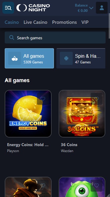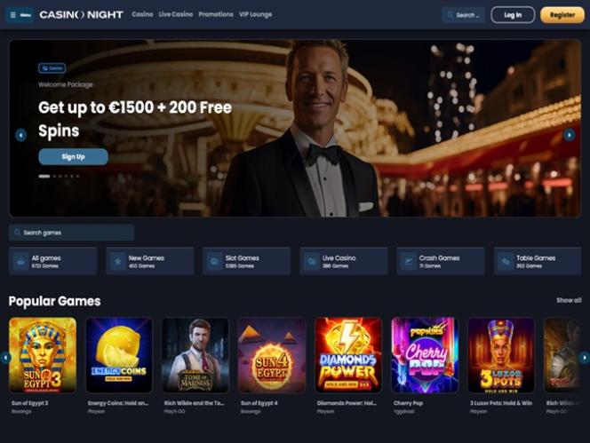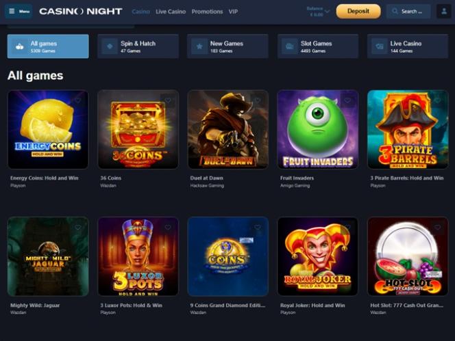 Casino Night oferece uma vasta coleção de jogos de slots, com mais de cinco mil títulos disponíveis, organizados em subcategorias: populares, bônus de compra, jackpot e Megaways. Sem dúvida, os jogadores não ficarão entediados aqui, pois essas categorias estão repletas de jogos de alta qualidade para jogadores de todos os níveis de experiência e gostos.