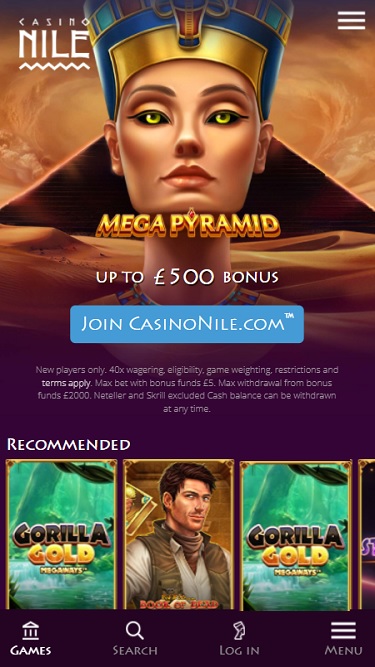 Casino Nile não recebeu o endosso do Wizard of Odds.