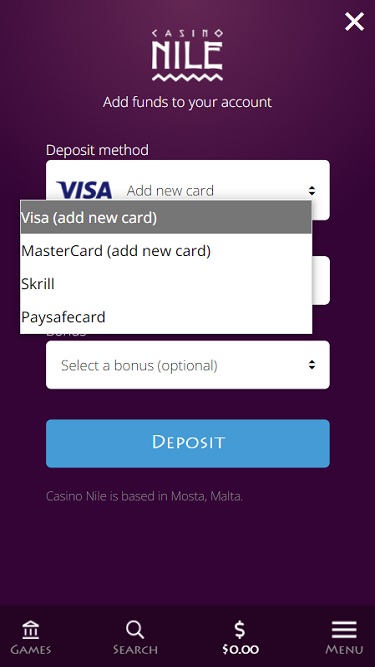 O Casino Nile possui licença para operar jogos de azar nas jurisdições de Malta e do Reino Unido. Esses são dois dos melhores locais para se obter uma licença, pois os órgãos reguladores responsabilizam os operadores de cassinos por suas ações.