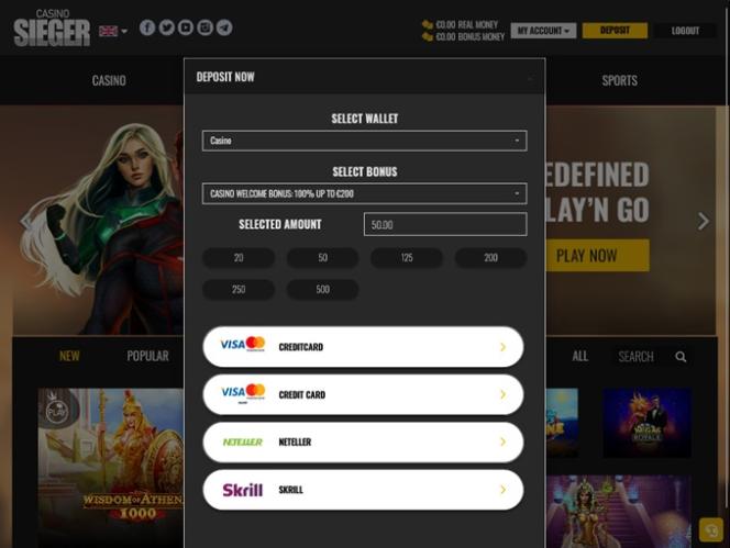 O Casino Sieger é alimentado por Microgaming, BetSoft, Amatic Industries, Big Time Gaming, ELK Studios, Habanero Systems, iSoftBet, Oryx, Play'n GO, Quickspin, Rabcat, Thunderkick, Wazdan, Realistic Games, Booming Games, Pragmatic Play, Nolimit City, Red Rake Gaming, Kalamba, Spin Games, Triple Edge Studios, OneTouch, All41 Studios, Gameburger Studios, Golden Rock Studios, Swintt, 7Mojos, Blue Guru Games, Games Global, 2by2 Gaming, bluberi, Merkur Gaming, Tom Horn Gaming, Gamomat, Zitro, Wild Streak Gaming, Golden Hero, Gamevy, Crazy Tooth Studio, Japan Technicals Games, Snowborn Games, Hacksaw Gaming, Peter And Sons, Betradar and Indigo Magic , que é fornecido através de uma plataforma baseada na web. Um site móvel também está disponível para aqueles que desejam jogar em smartphones e tablets.