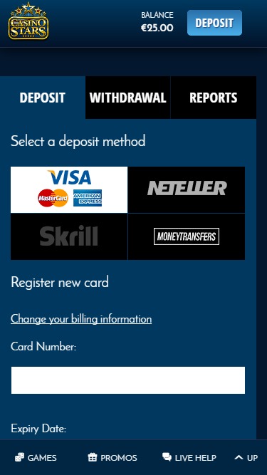 O Casino Stars é alimentado por BetSoft, Rival, Visionary iGaming and Pragmatic Play e os jogos do casino são fornecidos através de uma plataforma online, bem como através de um software para download que coloca todos os jogos do casino diretamente no seu disco rígido.Outros jogos