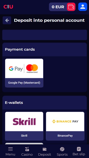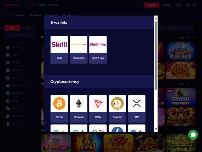 O CasinoAndYou oferece suporte a mais de 50 métodos de pagamento, incluindo clássicos como Visa, Mastercard, Skrill, Neteller e mais de 30 criptomoedas — Bitcoin, Ethereum, Litecoin, TRON, Dogecoin, USDT, entre outras. Eles também oferecem soluções de pagamento locais como Papara e Jeton para facilitar a vida dos jogadores regionais.