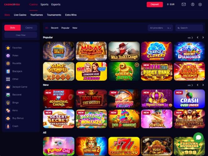 Você encontrará mais de 1.000 jogos de uma seleção criteriosa dos principais fornecedores, para que cada giro, virada de carta ou lançamento de dados seja respaldado por tecnologia de ponta. De caça-níqueis online a jogos de cassino ao vivo e tudo mais , o CasinoAndYou tem algo para todos os gostos e preferências.