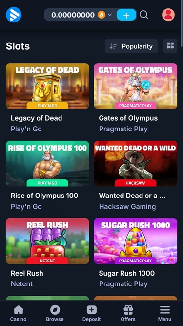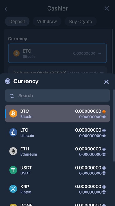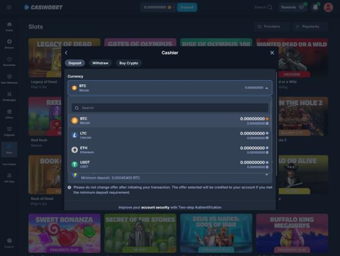 O cassino aceita tanto moedas fiduciárias quanto criptomoedas.