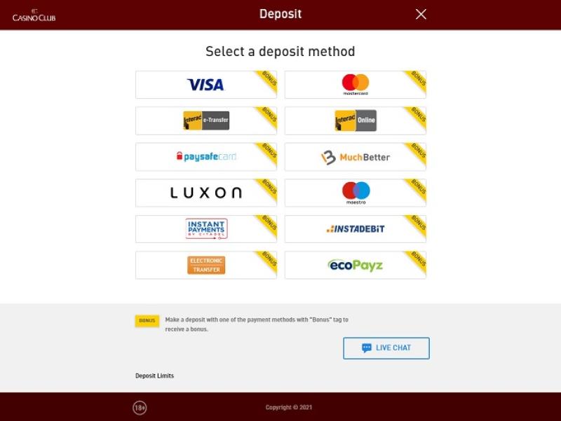 No Casino Club, os jogadores ganham um ponto por cada €10 apostados no casino. Ao atingirem 100 pontos, podem trocá-los por €1 em dinheiro real no casino.
