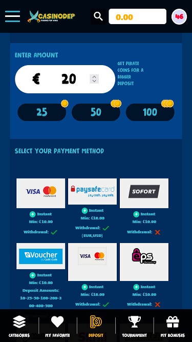 O CasinoDep oferece um programa de fidelidade que realmente apreciamos. Ao participar, você poderá jogar seus jogos favoritos e ganhar moedas que poderão ser trocadas por dinheiro posteriormente.