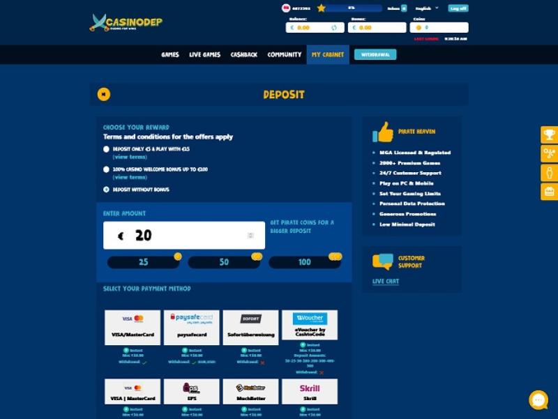 Quanto ao suporte ao cliente, você pode entrar em contato facilmente com um representante da CasinoDep por e-mail, chat ou pelo sistema de mensagens. Pela nossa experiência, podemos afirmar com segurança que eles respondem rapidamente e são muito prestativos . Isso é um grande ponto positivo para nós.