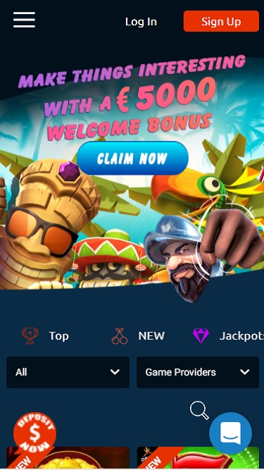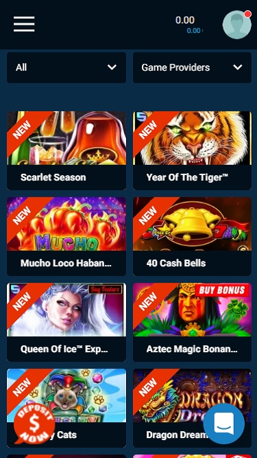 Este operador de cassino online e apostas esportivas possui uma plataforma de jogos organizada e eficiente. A interface utiliza um fundo azul-marinho e uma tipografia incrivelmente bem elaborada, que confere um toque de estilo e aprimora a atmosfera geral. Logo abaixo dos jogos de cassino, o menu principal, localizado no cabeçalho do cassino, apresenta um grande banner horizontal com uma oferta promocional para novos membros e personagens de cassino artisticamente desenhados, incluindo elementos como frutas, palmeiras e uma máscara Tiki polinésia.