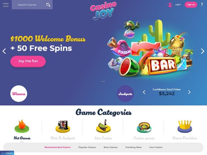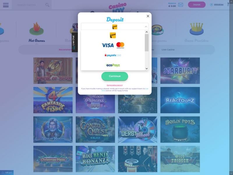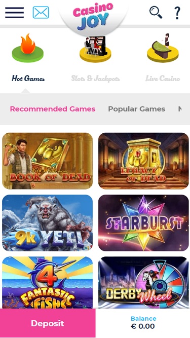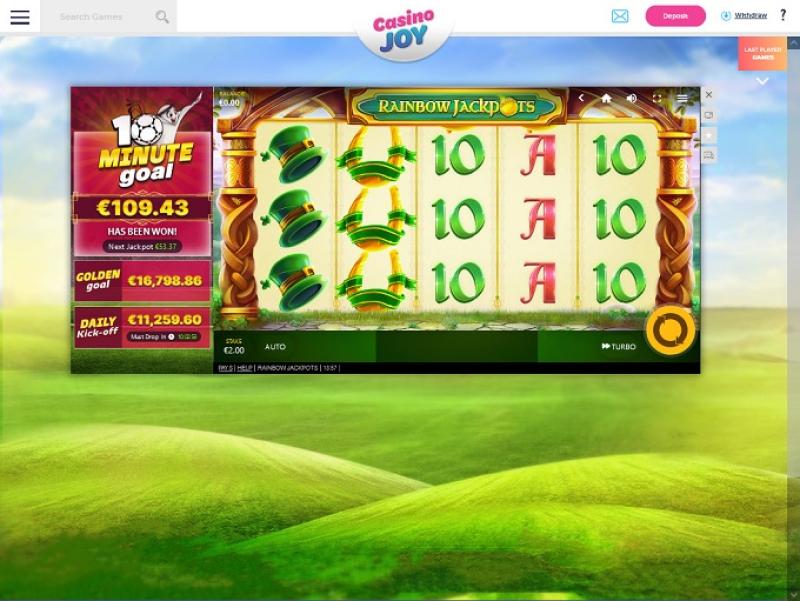 O Casino Joy é alimentado por Microgaming, Net Entertainment, Big Time Gaming, Evolution Gaming, Ezugi, iSoftBet, Oryx, Play'n GO, Quickspin, Rabcat, Relax Gaming, Yggdrasil, Wazdan, Pragmatic Play, Red Tiger Gaming, Skillzzgaming, Fantasma Games, Kalamba, Skywind, Triple Edge Studios, Dreamtech Gaming, All41 Studios, Gameburger Studios, Neon Valley Studios, Golden Rock Studios, GONG Gaming, Games Global, EveryMatrix, Push Gaming, Cayetano, Gamomat, Foxium, Just For The Win, Reflex Gaming, Golden Hero, 4ThePlayer, AvatarUX, ReelPlay, Snowborn Games, Boomerang Studios, Max Win Gaming, Half Pixel Studios, Peter And Sons, Eurostar Studios, Aurum Signature Studios and Penguin King e os jogos do casino são disponibilizados através de uma plataforma online de jogo instantâneo, que carrega diretamente no seu navegador de internet, sem necessidade de descarregar qualquer software para o seu computador. O site tem um design agradável e os jogos são fáceis de encontrar. Também é possível jogar em dispositivos móveis, permitindo-lhe jogar através do seu smartphone ou tablet em qualquer lugar com ligação à internet.