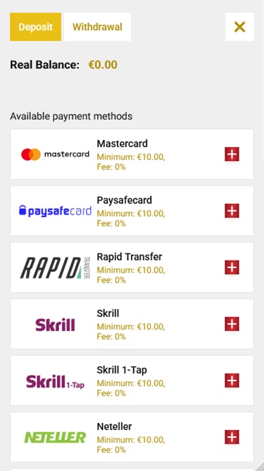 Os métodos de pagamento variam de acordo com o país, e alguns podem ser restritos em jurisdições específicas. Portanto, certifique-se de verificar exatamente quais opções de depósito e saque estão disponíveis para você. Ainda assim, acreditamos que, independentemente do país de origem, você poderá escolher entre uma ampla variedade de métodos de pagamento , tanto tradicionais quanto em criptomoedas, já que o caixa do cassino oferece diversas opções populares.