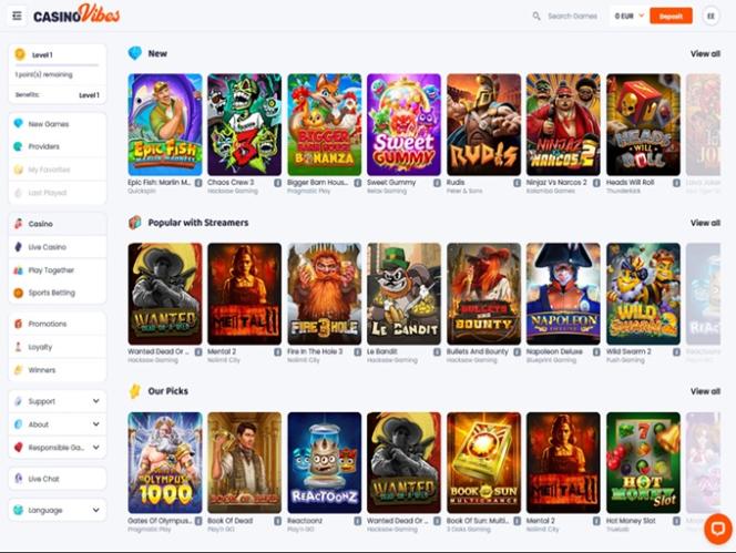 Levando tudo em consideração, o CasinoVibes é um ambiente de jogo completo em termos de aparência e aspectos técnicos, mas vamos dar uma olhada no que ele pode nos oferecer em termos de seleção de jogos.
