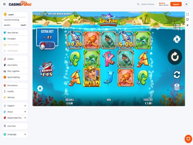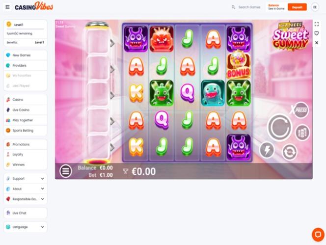 No CasinoVibes, os jogadores podem participar do programa de fidelidade, onde podem ganhar moedas e subir de nível. Quanto maior o nível, mais moedas você ganha, que podem ser trocadas por prêmios em dinheiro.