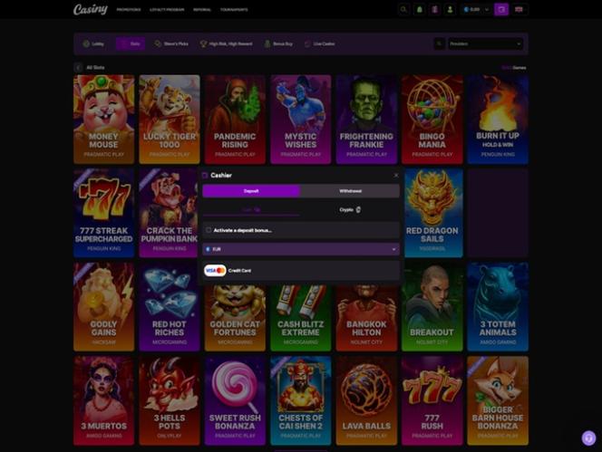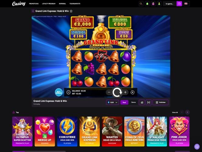 Com mais de 90 fornecedores de software , o Casiny Casino oferece aos jogadores uma seleção substancial de estúdios lendários e nomes promissores que, sem dúvida, valem a pena conferir.