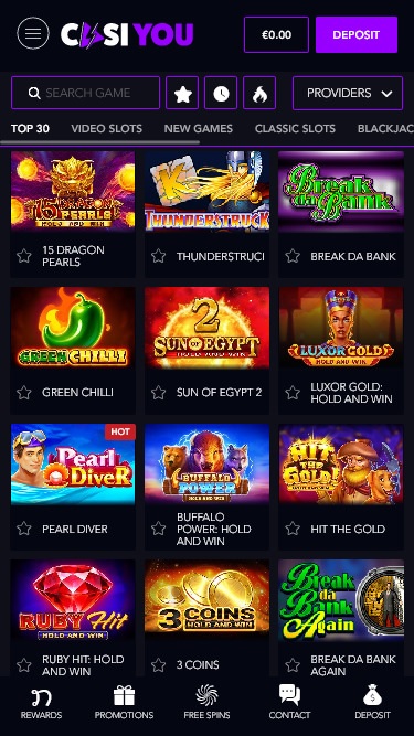 Capturas de tela do CasiYou Casino